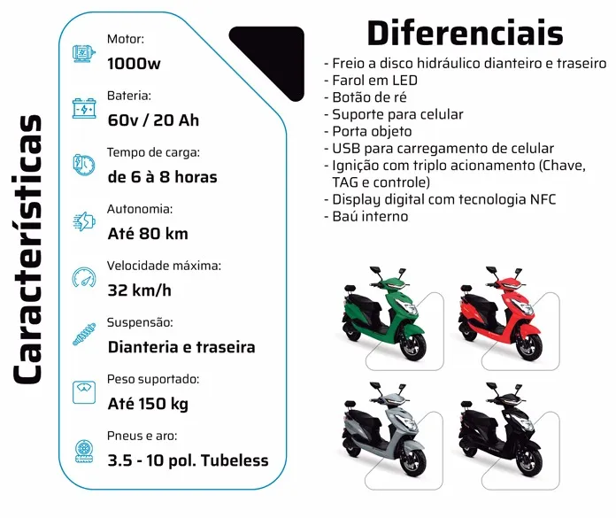 SCOOTER ELETRICA TOKIO 1000W 2025 BIKEMOTO 2025