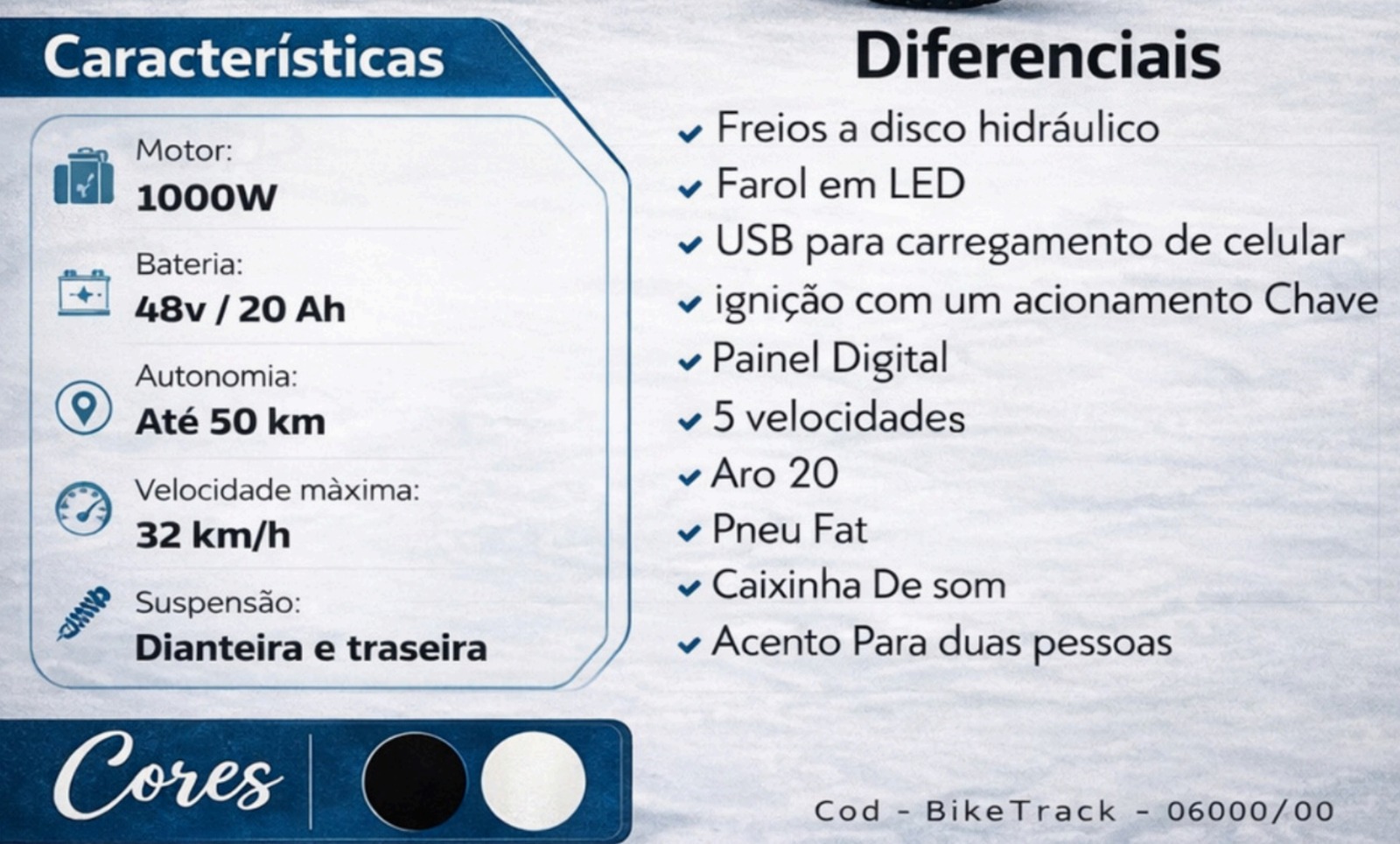 BICICLETA ELÉTRICA ETRACK 06000 1000W 2026