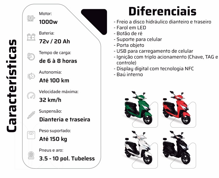 SCOOTER ELETRICA MONACO 1000W BIKEMOTO 2025