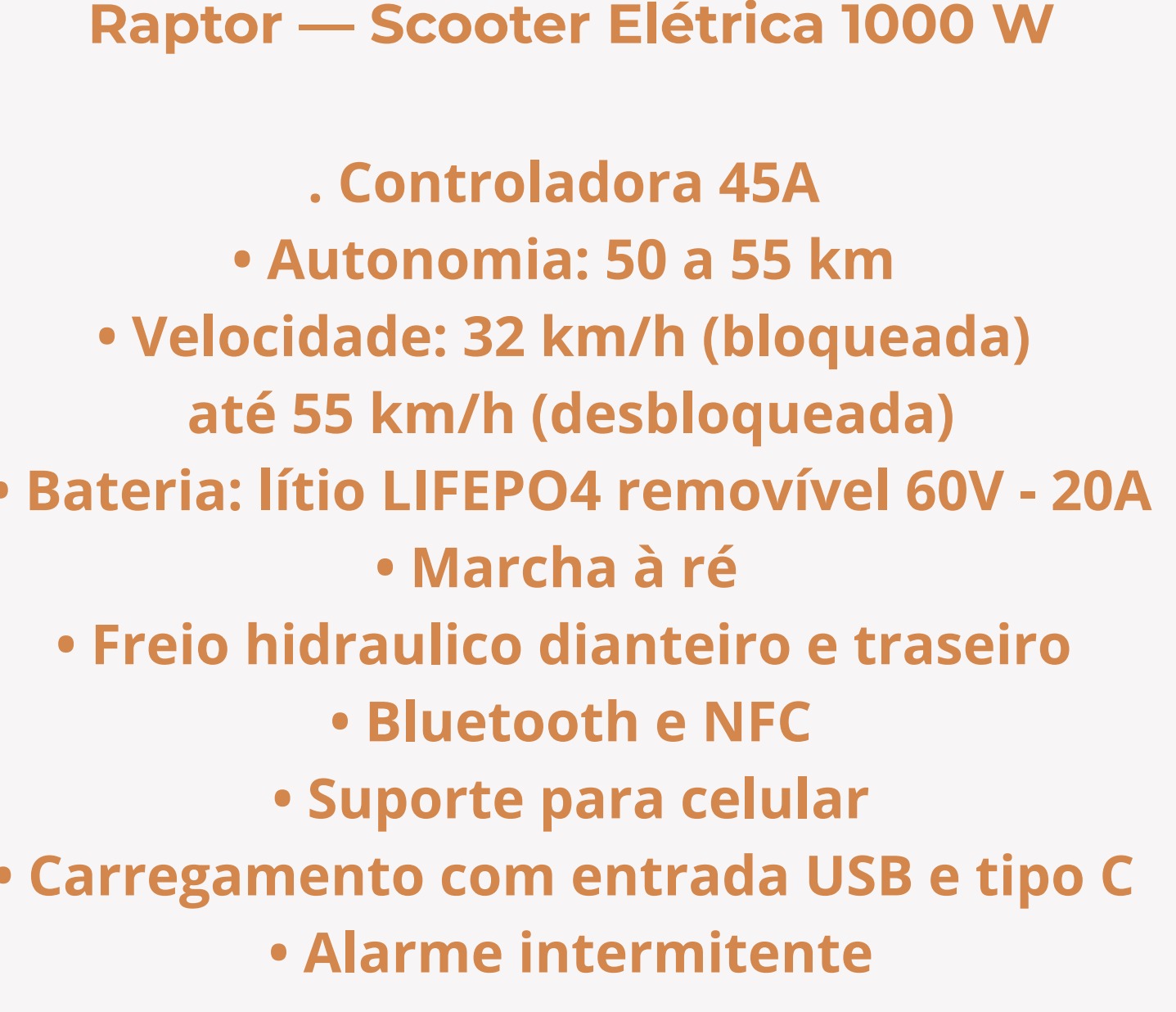 SCOOTER ELÉTRICA RAPTOR L13 TRONIX 1000W 2026