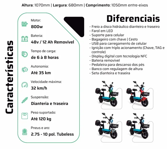 SCOOTER ELETRICA RIO 800W 2025 BIKEMOTO 2025