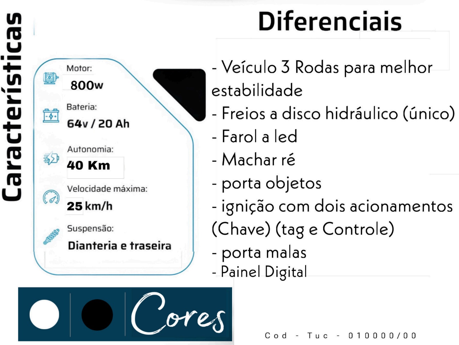 TRICICLO ELETRICO TUK TUK 1000W BIKEMOTO 2026